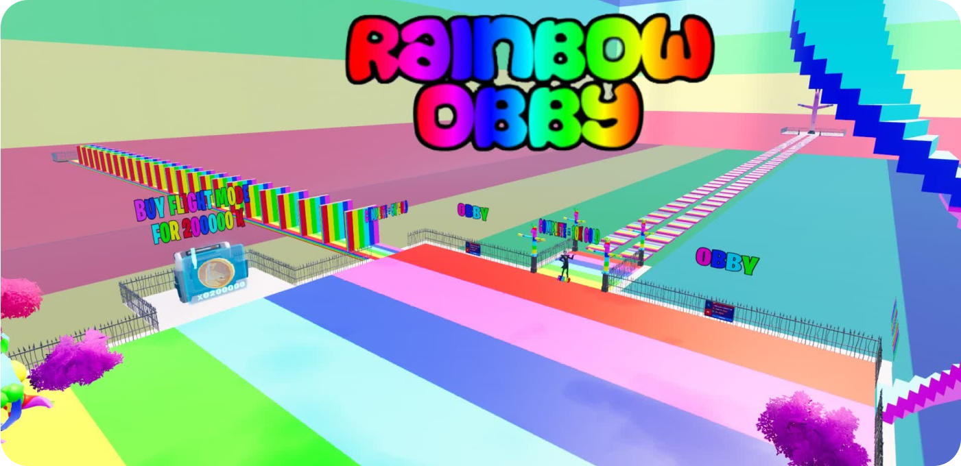 PLAY AND EXPLORE NOWRainbow Obby captures the joy of running, jumping, and testing limits in a colorful playground. Every obstacle feels unique, keeping the game unpredictable and engaging. The design challenges both reflexes and problem-solving, offering variety in every run. Players are motivated by the thrill of progress and the pride of mastering tough stages. The rainbow visuals create an uplifting atmosphere that makes challenges feel exciting rather than stressful. As you advance, levels grow tougher, pushing you to refine your skills. The blend of creativity and challenge ensures that no two sessions feel the same. It’s the perfect mix of fun, color, and difficulty. Rainbow Obby isn’t just a platformer—it’s an invitation to embrace challenge with joy.